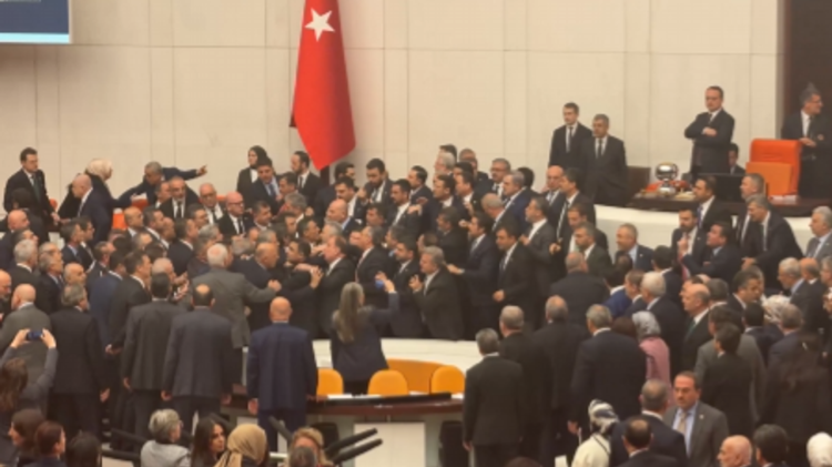 CHP'li vekiller kürsü önünde protestosunu sürdürürken Meclis'te milletvekilleri arasında kavga çıktı.