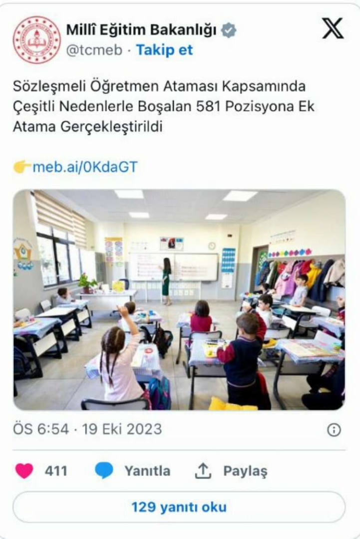 Millî Eğitim Bakanlığı, 581 boş öğretmen pozisyonuna ek atama gerçekleştirdi.İşte haberin detayları..