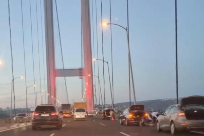 Osmangazi Köprüsünde seyir halindeki peş peşe giden araçların lastikleri patladı.