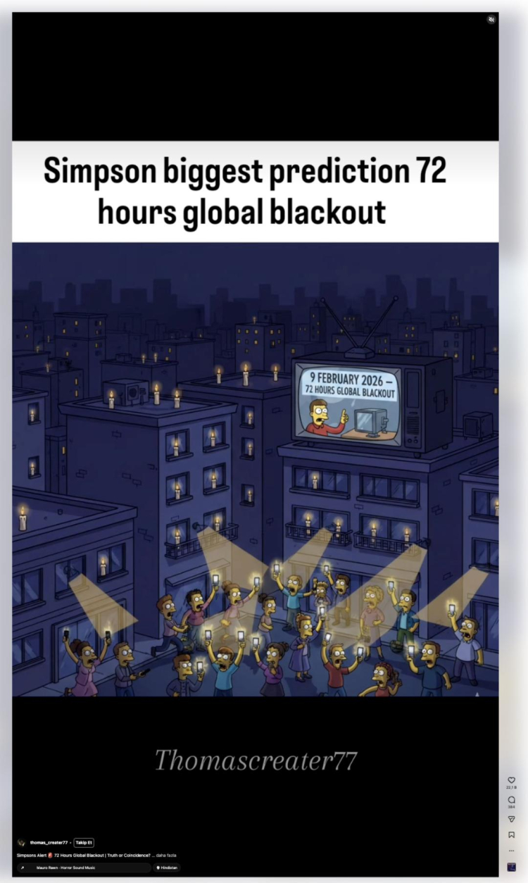 Sosyal medyada hızla yayılan görüntüler, Simpsonlar’ın 9 Şubat’ta 72 saat sürecek küresel bir elektrik kesintisini önceden tahmin ettiği iddiasını gündeme taşıdı. Viral olan sahneler, 'Simpsonlar bu sefer bildi mi?' sorusunu da beraberinde getirdi.