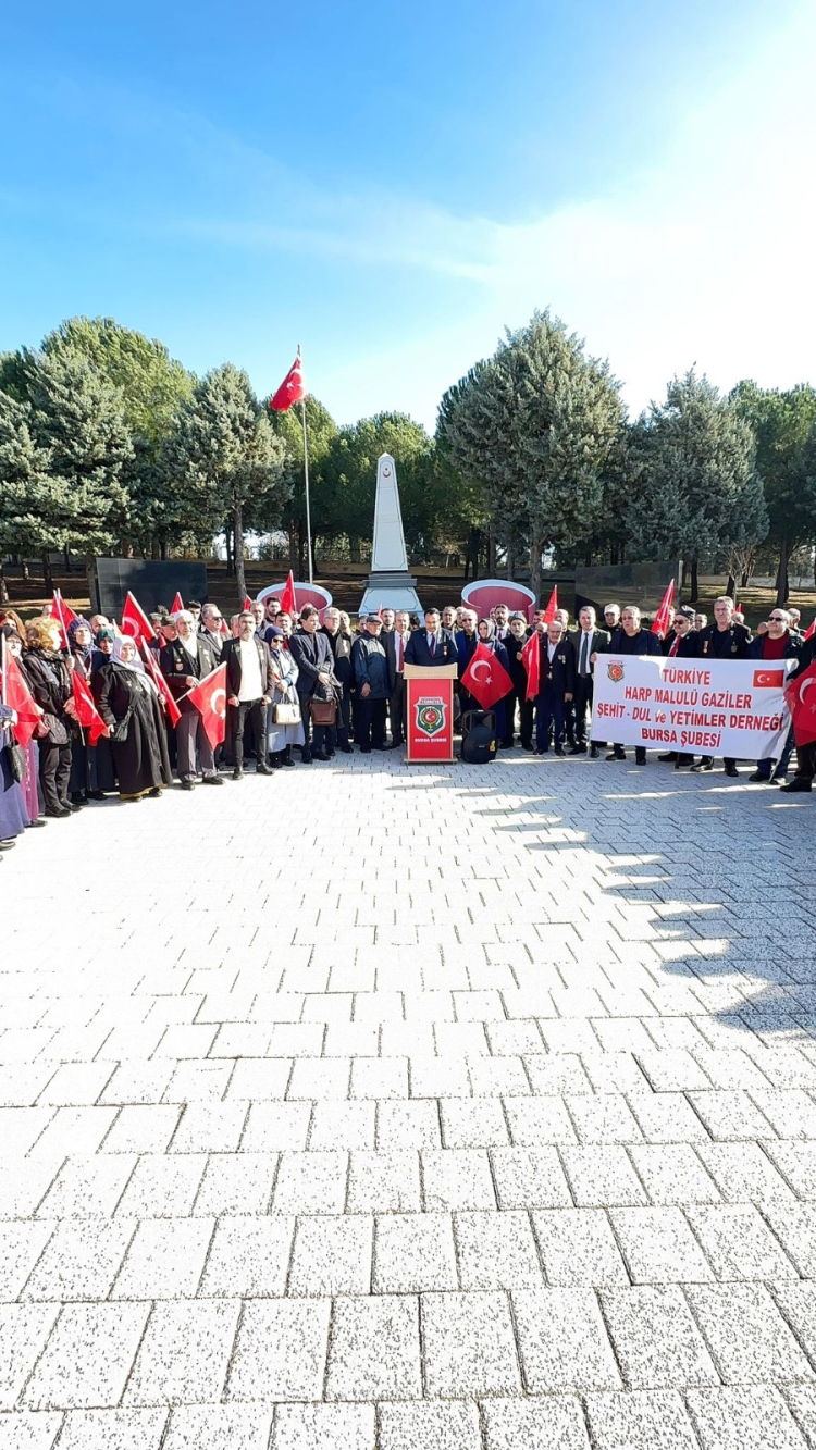 Terörist başı Abdullah Öcalan ile ilgili gelişen süreçlere dair Türkiye Harp Malûlü Gaziler Şehit Dul ve Yetimleri Derneği Bursa Şube Başkanı Haşim Sivri ve Dernek Üyeleri Bursa Hamitler Şehitliği’nde gündeme ilişkin basın açıklamasında bulundular.