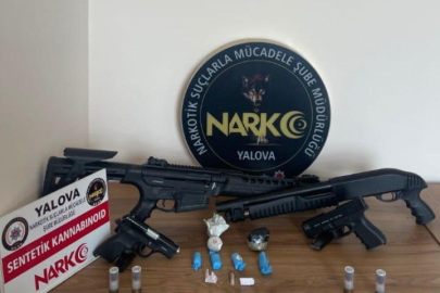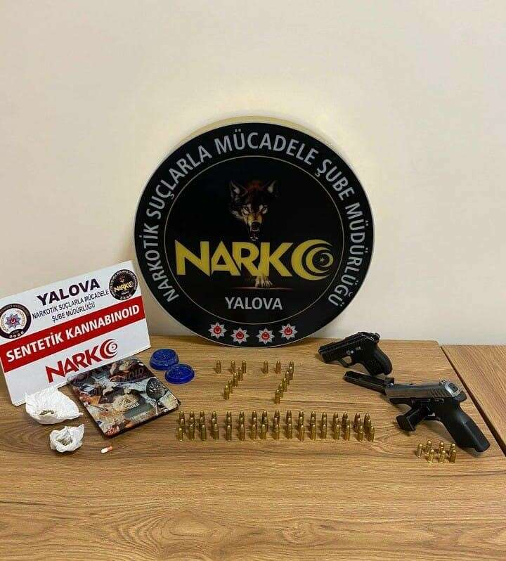 Yalova Emniyet Müdürlüğü Narkotik Suçlarla Mücadele Şubesi ekipleri, kente çevre illerden uyuşturucu madde getirebileceğini değerlendirerek, yol uygulaması ve anlık şok operasyonlar gerçekleştirdi. Dedektör köpekler Zeytin ve Gölge eşliğinde yapılan aramalarda 171 gram skunk, 49.46 gram sentetik kannabinoid, 49.44 gram metamfetamin, sentetik ecza grubu tablet, hassas terazi, uyuşturucu madde öğütücüsü, 2 av tüfeği, 8 tabanca ve bu silahlara ait 144 fişek ele geçirildi. Operasyonlarda araçlarda bulunan Y.Ç., S.S., B.A., F.T., A.Y., Ç.B., M.U., F.K., H.B.K. ve T.M. gözaltına alındı. Emniyetteki işlemleri tamamlanan zanlılar adliyeye sevk edildi.
