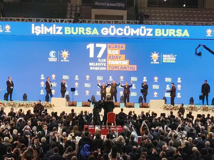 "Hepiniz hoş geldiniz, sefa getirdiniz. Sayın Cumhurbaşkanımız, partimizin kurulduğu tarihten beri Bursalı hemşehrilerimize ve bize destek verdiler. İnşallah bugün, bu emaneti 31 Mart akşamı size iade etmeye söz veriyoruz. Aldığımız güçle 25 yıldır yapılmayan yatırımları bir yılda gerçekleştirdik. Bundan sonra da Bursa için dolu dizgin hizmet vermeye devam edeceğiz."