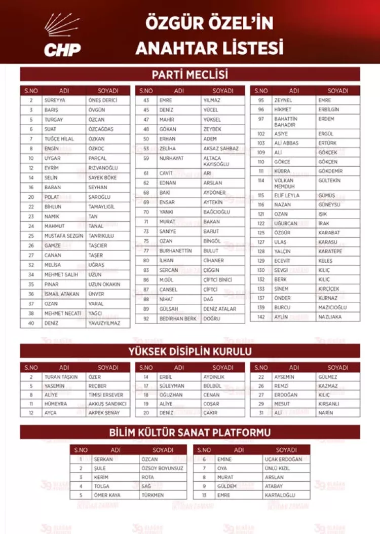 ÖZGÜR ÖZEL'İN ANAHTAR LİSTESİNİN TAMAMI