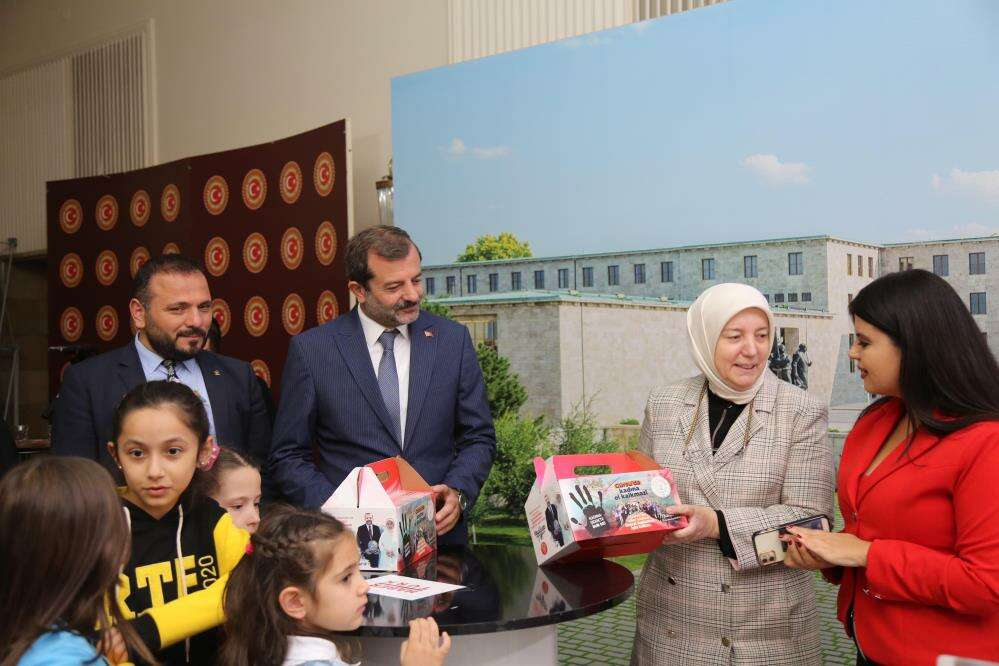 Cumhurbaşkanı Erdoğan ile görüştükten sonra TBMM’yi gezme imkanı da bulan Gürsu Belediye Başkanı Mustafa Işık’ın küçük misafirleri, Başkan Işık, eşi Sümeyye Işık, AK Parti Gürsu İlçe Başkanı Erkan Şekeroğlu ve Milletvekili Emine Yavuz Gözgeç ile beraber özel hazırlanan Gürsu armutlarını da ikram etti. İsim annesi Hatice Muazzez Kutlay olan Gürsu’nun kadına verdiği değerin aktarıldığı ziyaret herkesi tebessüm ettirdi.