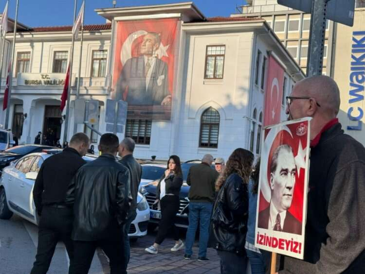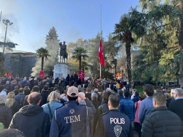 Ulu Önder Mustafa Kemal Atatürk’ün ebediyete intikal ettiği saat 9'u 5 geçe sirenlerin çalmasıyla Bursa’nın cadde ve sokaklarında vatandaşlar saygı duruşunda bulundu.
