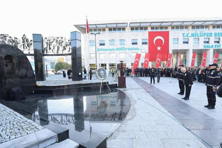 Nilüfer Belediyesi Halk Evi önündeki Nilüfer Cumhuriyet Meydanı’nda ve Alaaddinbey Hizmet Binası önünde düzenlenen törenlerde bütün çalışanlar katıldı.