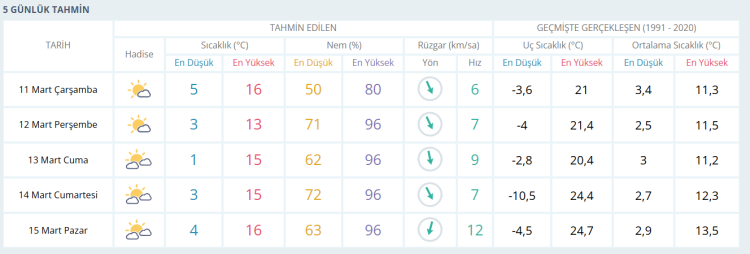 Meteoroloji verileri, hafta boyunca yağış beklentisinin düşük olduğunu ve güneşin zaman zaman bulutların arasından kendini göstereceğini ortaya koyuyor. Nem oranının bazı günlerde yüksek seviyelere çıkabileceği belirtilirken özellikle gece ve sabah saatlerinde serin havaya karşı vatandaşların dikkatli olması tavsiye ediliyor. Rüzgarın ise genellikle hafif ve zaman zaman orta kuvvette esmesi bekleniyor.