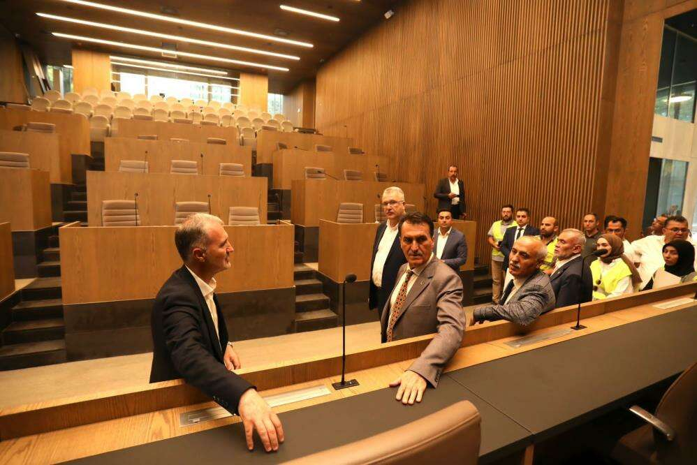 İnegöl Belediyesi Encümen Salonu’nda yapılan toplantı sonrası Birlik Başkanı Mustafa Dündar ve üye belediye başkanları, ilçede devam eden iki projeyi yerinde incelendi. İnegöl Belediyesi’nin Kent Meydanı ve Yeni Yaşam Alanı ile Merkez Park projelerini inceleyen başkanlara, İnegöl Belediye Başkanı Alper Taban tarafından bilgiler verildi.