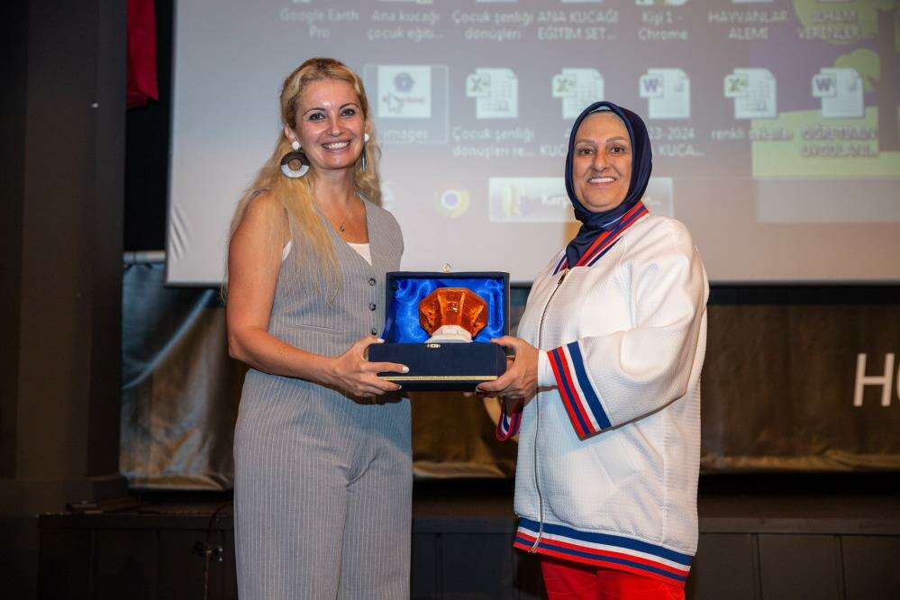 Büyükşehir Belediyesi Başkanvekili Halide Serpil Şahin, seminerde sunum yapan Akademisyen Ebru Kalyoncu’ya hediye takdim etti. Etkinlik yeni dönem için pasta kesilmesinin ardından sona erdi.
