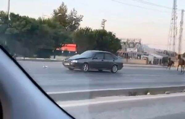 Bursa'da 11 Eylül Bulvarı, yakın çevre yolunda sahipsiz şekilde başıboş gezen atlar trafiği birbirine kattı. Ters şeritten dört nala koşan atlar, karşı yönden gelen araca çarptı. Sürücü ne olduğunu anlamadan aracın ön tarafı dağıldı. Yaşanan korku dolu anlar ise, saniye saniye bir vatandaş tarafından kaydedildi.