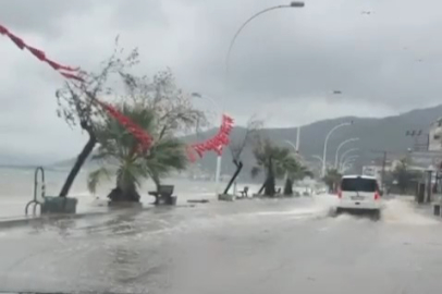 Bursa'da dün etkili olan sağanak yağış bazı sahil bölgelerinde denizin taşmasına ve karayolu ile birleşmesine sebep oldu.
