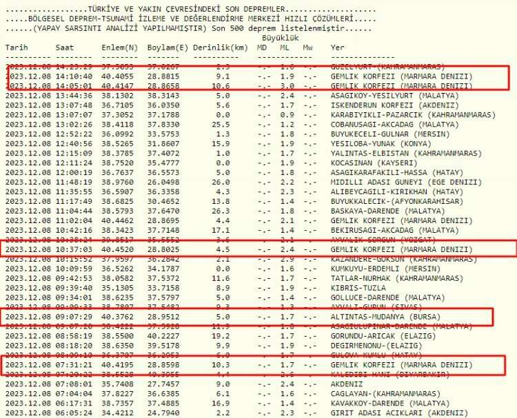 BURSA'DA MEYDANA GELEN DEPREMLER