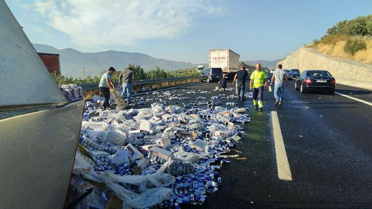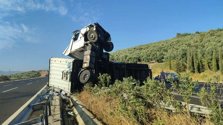Yolun sağındaki bariyere çarpan tır daha sonra yol ortasına devrilerek sürüklenerek orta refüje çarptı. Kaza sonrasında tırın kupası şaha kalkarken, tır dorsesinde bulunan yaklaşık 25 ton enerji içeceği yola saçıldı.