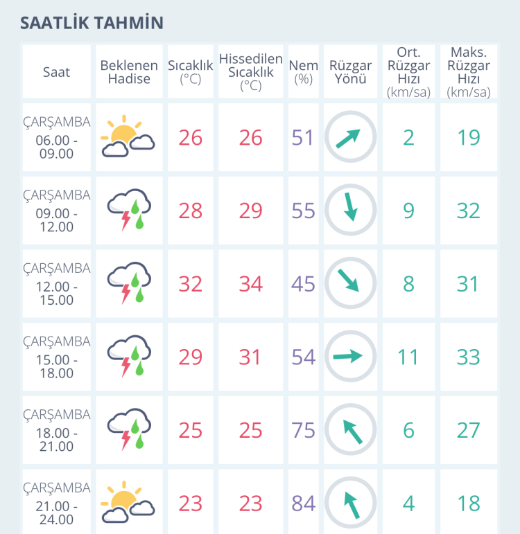 Öğle saatlerinden sonra, hava sıcaklıkları hızla yükselmeye devam etti ve şehir genelinde termometreler 32 dereceyi gösterdi. Ancak sıcaklık artışına rağmen yağışların kesintisiz bir şekilde bölgesel olarak etkili olmaya devam edeceği tahmin ediliyor. Bu nedenle, özellikle dışarıda vakit geçirecek olanlar için yağışlara karşı tedbirli olunması öneriliyor.