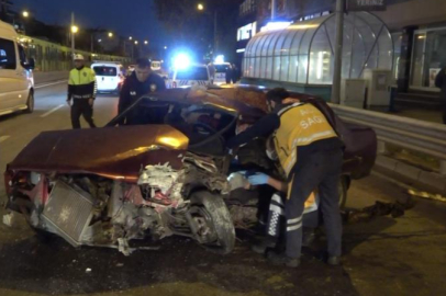 Bursa'da kaza: Otomobil Bursaray bariyerine çarptı, 2 kişi yaralandı