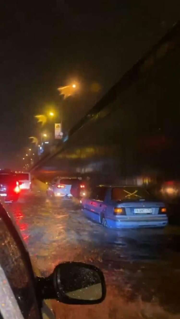 Bursa’da etkili olan sağanak yağış ve dolu, vatandaşlara zor anlar yaşattı. Sağanak yağış sebebiyle yolda kalan araçlar vatandaşların kameralarına yansıdı.