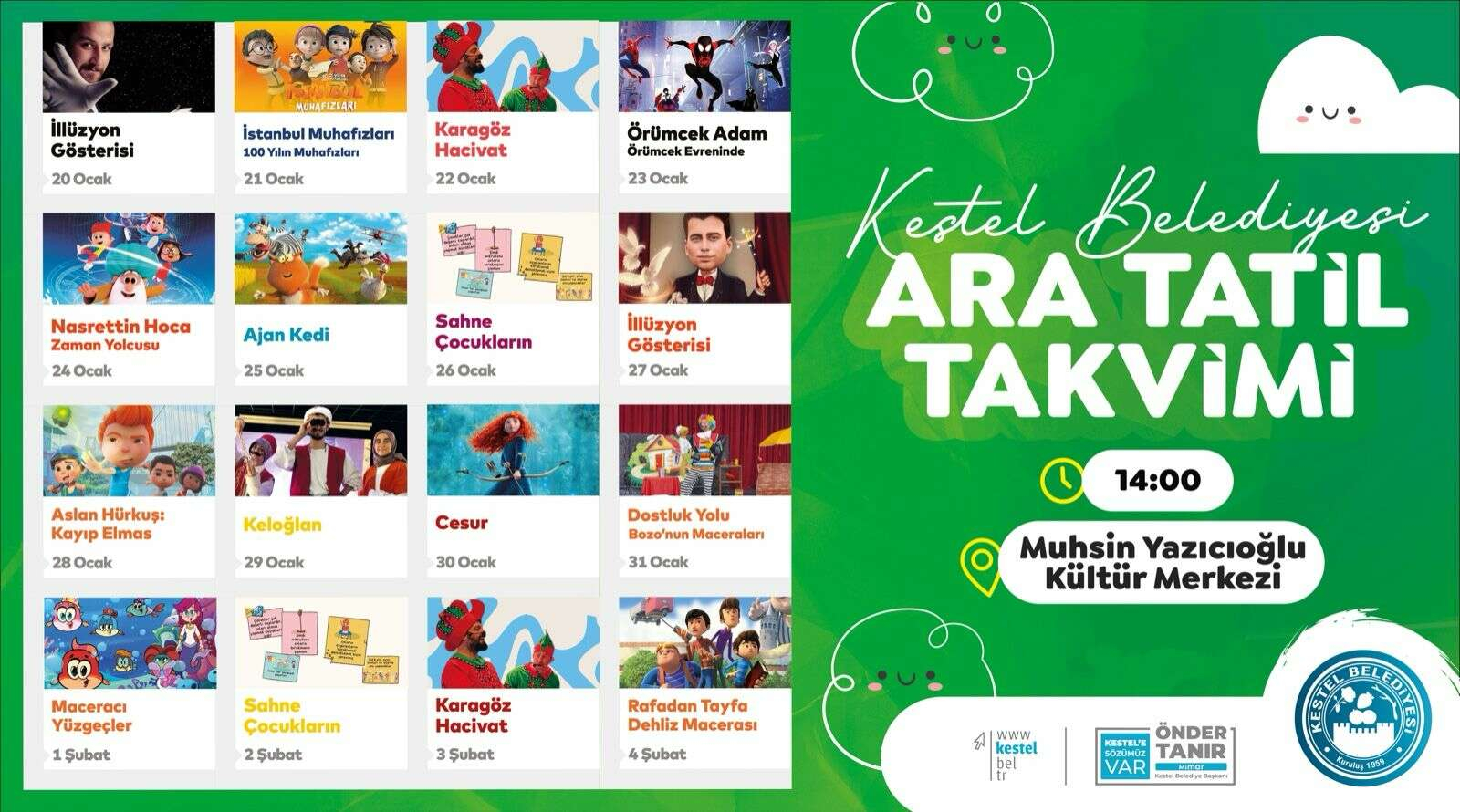 Kestel Belediyesi, çocuklara yönelik olarak hazırladığı ara tatil etkinlik takvimi duyurdu.