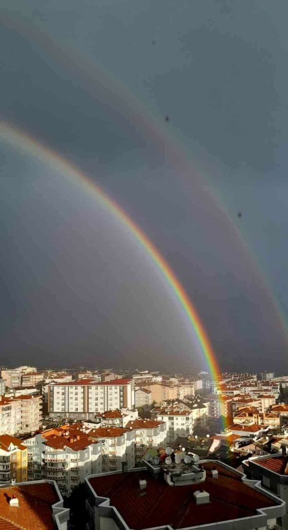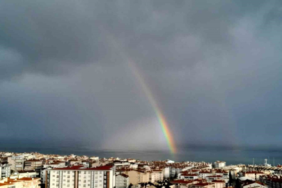 Bursa'nın Mudanya ilçesinde sabah saatlerinde etkili olan yağmur, gökkuşağıyla taçlandı.