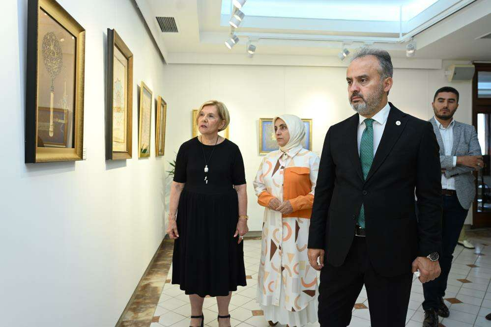 Bursa Büyükşehir Belediye Başkanı Alinur Aktaş da sergi ziyaret ederek Tezhip sanatçısı Memnune Birkan’ı tebrik etti. Çalışmaları hakkında bilgi alan Başkan Alinur Aktaş, Bursa’nın köklü tarihiyle büyüleyici bir şehir olduğunu söyledi. Şehir kimliğini oluşturan kültürel değerlerinin sanat dünyasına ilmek ilmek işlendiği bir yer olduğunu da belirten Başkan Aktaş, Bursa’nın kültürel ve sosyal hayatıyla öne çıkmayı başarabilen, farklı etkinliklerle sosyokültürel hayatını sürekli zenginleştiren bir şehir olduğunu ifade etti. Sanatkârlar şehri olan Bursa’nın kültürüne ve tarihine sahip çıktıklarını dile getiren Başkan Aktaş, “Bursa Büyükşehir Belediyesi olarak her projede kültürel ve sanatla ilgili değerlerimizi, sadece Türk milletine değil, tüm dünyaya bırakılacak mirasımız olarak görüyor ve gözetiyoruz. Geleneksel sanat dallarımızı genç nesillere aktarma noktasında önemli programlara imza atıyoruz. Böylece dünün emaneti sanat dallarımızın yarınlara teslim edilmesini de garanti altına almış oluyoruz. Büyükşehir Belediyesi’nin katkılarıyla düzenlenen ‘Saraydan Sanata Tezhip’ sergisi de saray eserlerini tezhiple buluşturarak gün yüzüne çıkarmaktadır. Memnune Birkan başta olmak üzere emeği geçen herkese teşekkür ediyorum” dedi.