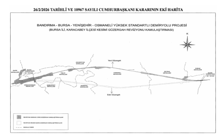 Kamulaştırma kararının, devam eden Bandırma–Bursa–Yenişehir–Osmaneli Hızlı Tren Projesi güzergahındaki bazı ilçe ve mahalleleri kapsadığı belirtildi. Detaylı parsel listesi ve kroki bilgileri karar ekinde yayımlandı.