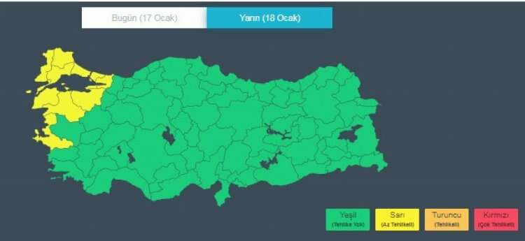 Yarın saat 20:00'den itibaren etkili olacak fırtınanın 19 Ocak Cuma günü saat 09:00'a kadar süreceği belirtildi.