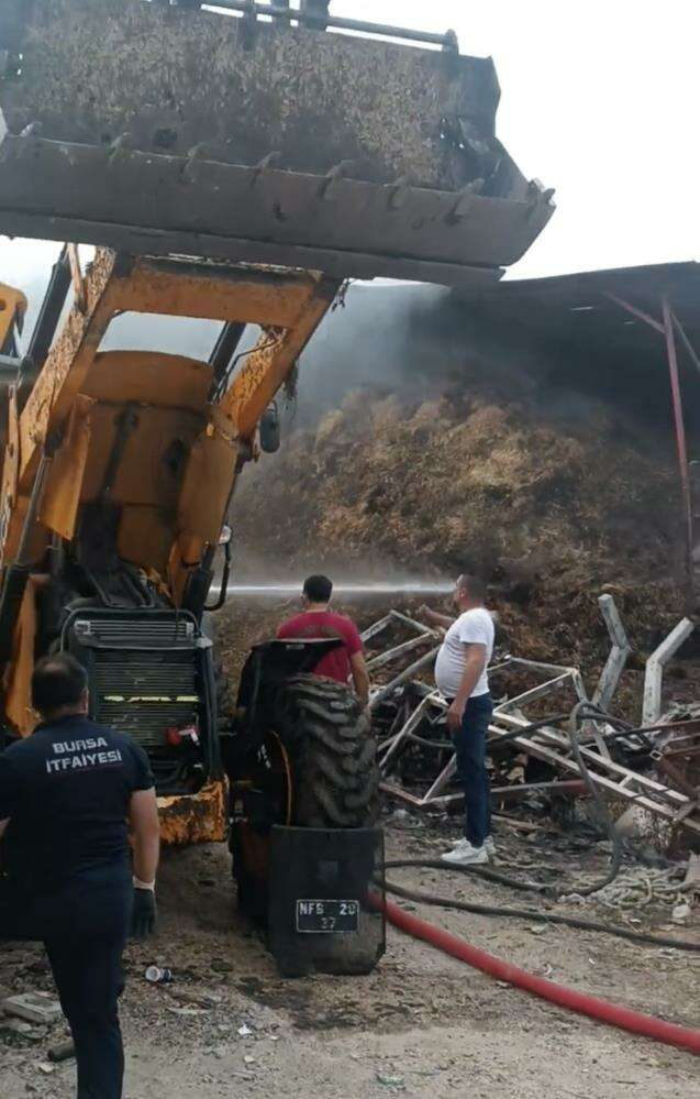 Yangın, Nilüfer ilçesine bağlı Hasanağa Mahallesi üzerinde ki bir çiftlikte meydana geldi. Hayvan yemlerinin bulunduğu depoda dumanlar yükselmeye başladı. Kısa sürede alevlerin sarmasıyla yem balyaları tutuştu.