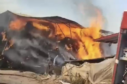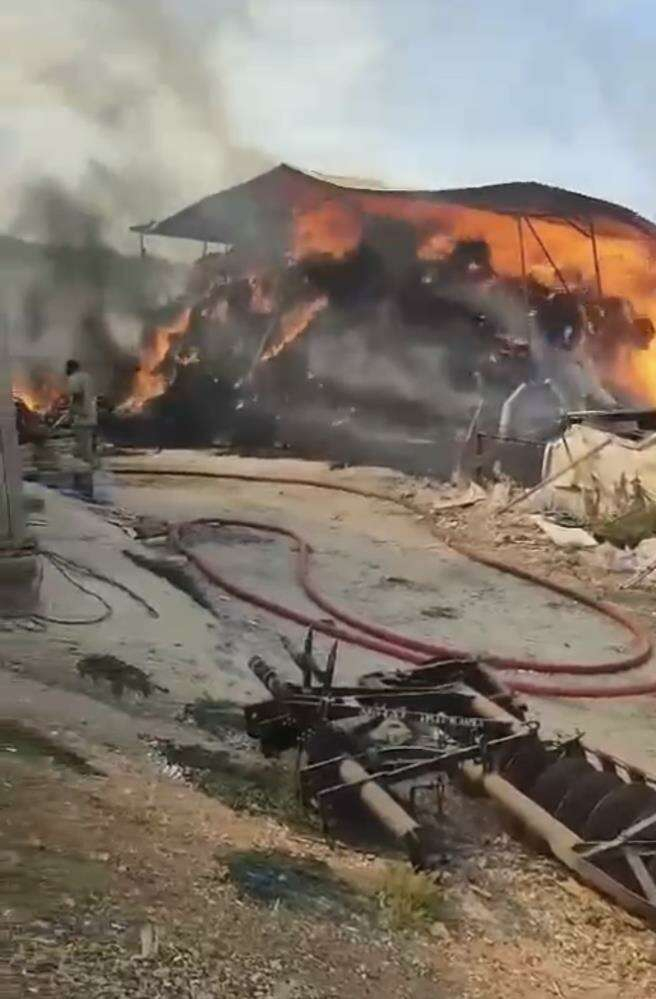 Çiftlikte bulunan yem dolu depo alev alev yandı
