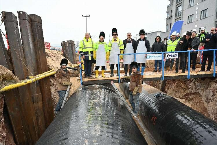 Bursa’ya 2060 yılına kadar susuzluk yaşatmayacak olan ‘Bursa Çınarcık İçme Suyu Projesi’nde çalışmalar tüm hızıyla ilerlerken, içme suyunu şehre ulaştıracak hattın imalatı düzenlenen törenle başlatıldı.