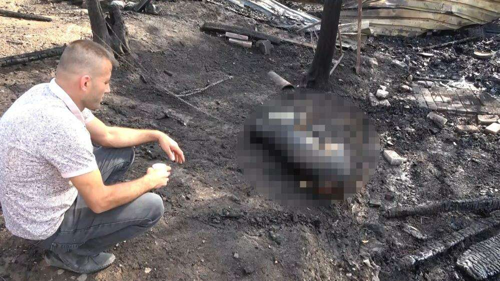 Alevlerin sıçradığı çiftlikte ise bir köpek telef oldu. Çiftlik sahibi duygusal anlar yaşarken, o anlar kameraya yansıdı.