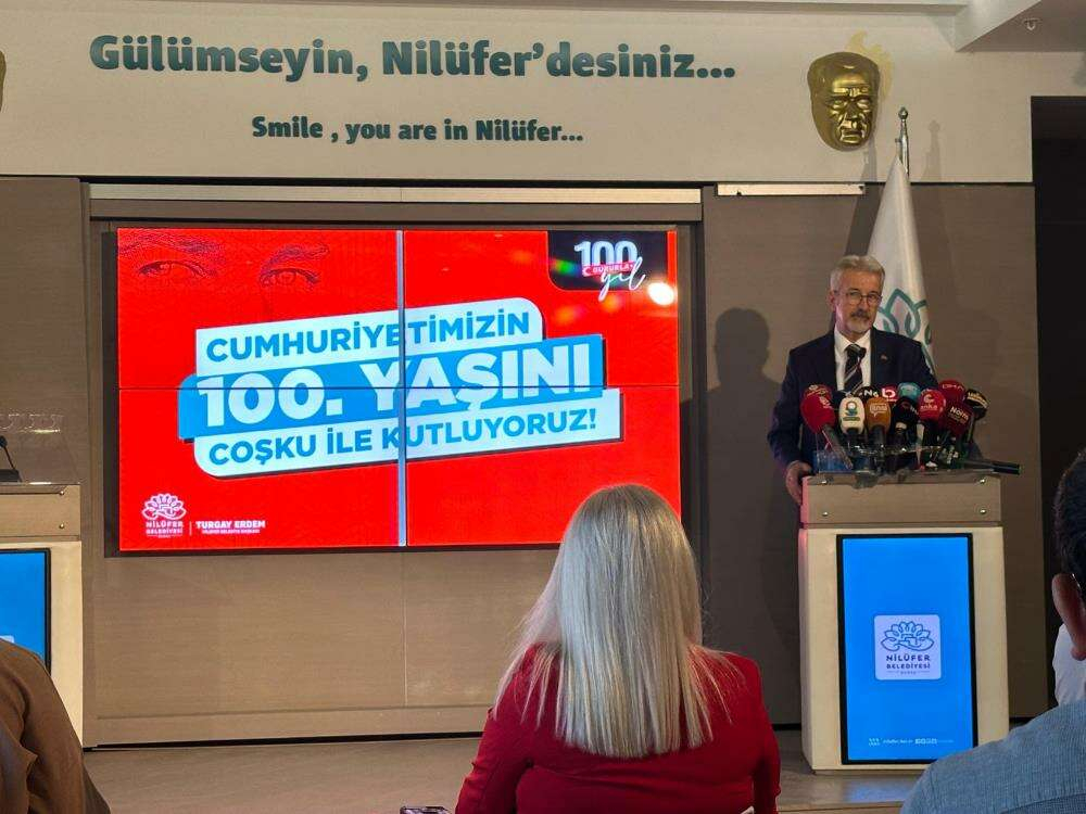 Nilüfer Belediyesi, Cumhuriyet’in 100. yılını Ekim ayı boyunca çok özel etkinliklerle halkla birlikte kutlayacak. Etkinlik programını açıklayan Başkan Turgay Erdem, tüm Bursalıları Cumhuriyet coşkusunu paylaşmaya davet etti.