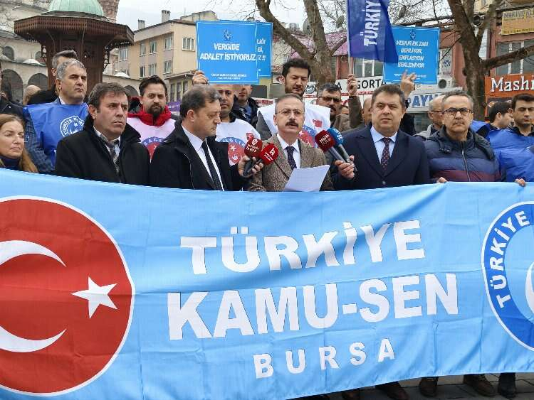 Bursa'da Türkiye Kamu Çalışanları Konfederasyonu'nun il temsilciliği, kamu görevlilerinin ve emeklilerin acil çözüm bekleyen sorunlarına ilişkin bir basın açıklaması yaptı.