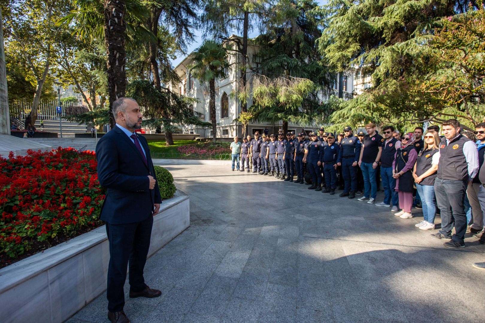 Osmanlılar döneminde ‘Tulumbacılar’ olarak bilinen, 1914 yılında Yangın Söndürme Örgütü’ne dönüşen ve 25 Eylül 1923’ten itibaren belediyelerin üstlendiği itfaiyecilik mesleği, 309 yıldır vatandaşa hizmet ediyor. İtfaiye hizmeti, belediyecilik alanında en hayati öneme sahip birim olurken, hem itfaiye hizmetleri hem de yangına karşı alınacak önlemlere dikkat çekmek için İtfaiye Haftası çeşitli etkinliklerle kutlanıyor. Bursa Büyükşehir Belediyesi İtfaiye Daire Başkanlığı tarafından düzenlenen törenler, Atatürk Anıtı’na çelenk sunulması ile başladı. Büyükşehir Belediyesi Başkanvekili Ali Mersin ve itfaiye erleri, Atatürk Anıtı’na çelenk sundu. Çelenk sunumunun ardından saygı duruşunda bulunuldu ve Büyükşehir Belediyesi Bandosu eşliğinde İstiklal Marşı okundu.