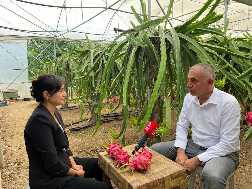 Menşei Güney Amerika olan ve Güney Amerika iklimine uyumlu ejder meyvesini anlatan üretici Özhan Öztürk, meyvenin faydalarını ise şu sözlerle ifade etti; “Bu yıl 5. yılımız. Bu meyvenin bizim ülkemizde çok fazla bir geçmişi yok. İnsanların da belki de yüzde 70’i şu meyveyi bilmiyor, tatmamış. Hem üniversite araştırmalarında hem de bizim yaptığımız araştırmalarda bu meyvenin iç hastalıkları olmak üzere, şeker tansiyon gibi birçok hastalığa iyi geldiği biliniyor.” dedi.
