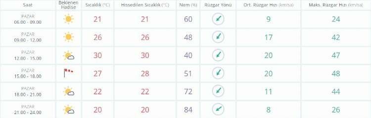 Rapora göre Bugün (PAZAR) şehir genelinde sabah ve öğle saatlerinde hava açık olsada akşam saatlerinde ise sıcaklıklar düşüşe geçiyor ve açık olan hava ile birlikte rüzgar etkisini gösteriyor. Öte yandan 5 günlük raporda rüzgarlı ve sıcak bir hava Bursa genelinde Bursalıları bekliyor.