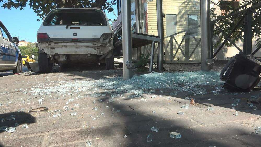 Otomobil otobüs durağına daldı: 1'i ağır 3 yaralı