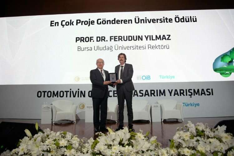Otomotiv Endüstrisi İhracatçıları Birliği (OİB), 2012 yılından bu yana devam eden ve otomotiv sektörünün geleceğini şekillendirmeyi amaçlayan "Otomotivin Geleceği Tasarım Yarışması"nda bir kez daha Bursa Uludağ Üniversitesi'ni (BUÜ) ödüllendirdi. Bu yılki ödül töreni Bilişim Vadisi'nde gerçekleşti ve OİB Denetim Kurulu Üyesi Ali İhsan Yeşilova, ödülü Rektör Prof. Dr. Ferudun Yılmaz'a takdim etti.