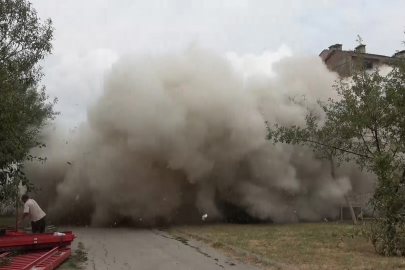 Proje için yıkılan bina toz bulutuna döndü