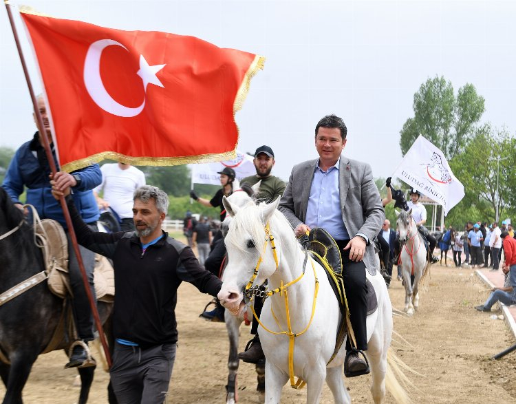 Osmangazi Belediye Başkanı Erkan Aydın, yarış alanına ata binerek giriş yaptı.