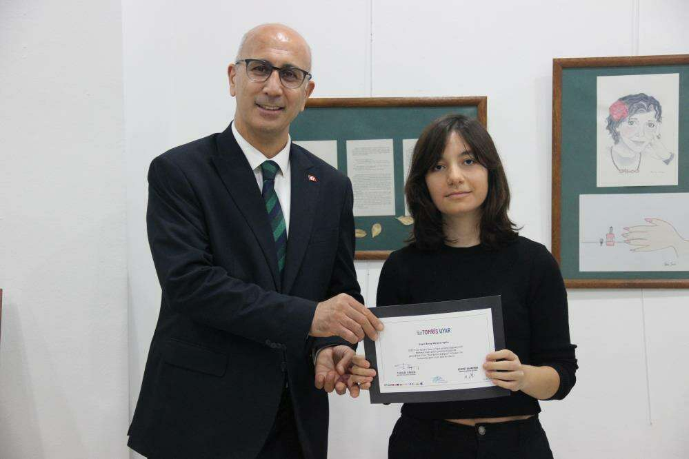 Karikatür atölyesi öğrencilerinin, öyküyü çizgilerle anlattığı karikatürleri düzenlenen sergide seyirciye açıldı. Konak Kültüevi’ndeki serginin açılışını Nilüfer Belediye Başkan Yardımcısı Remzi Çınar yaptı. Sergiyi gezerek karikatürleri tek tek izleyen Çınar, başarılı çizgileri için öğrencileri kutladı. Eğitmen Mehmet Kahraman’a katkılarından dolayı teşekkür eden Nilüfer Belediye Başkan Yardımcısı Remzi Çınar, yılın yazarı atölyesini başarıyla tamamlayan öğrencilere de katılım belgelerini verdi.