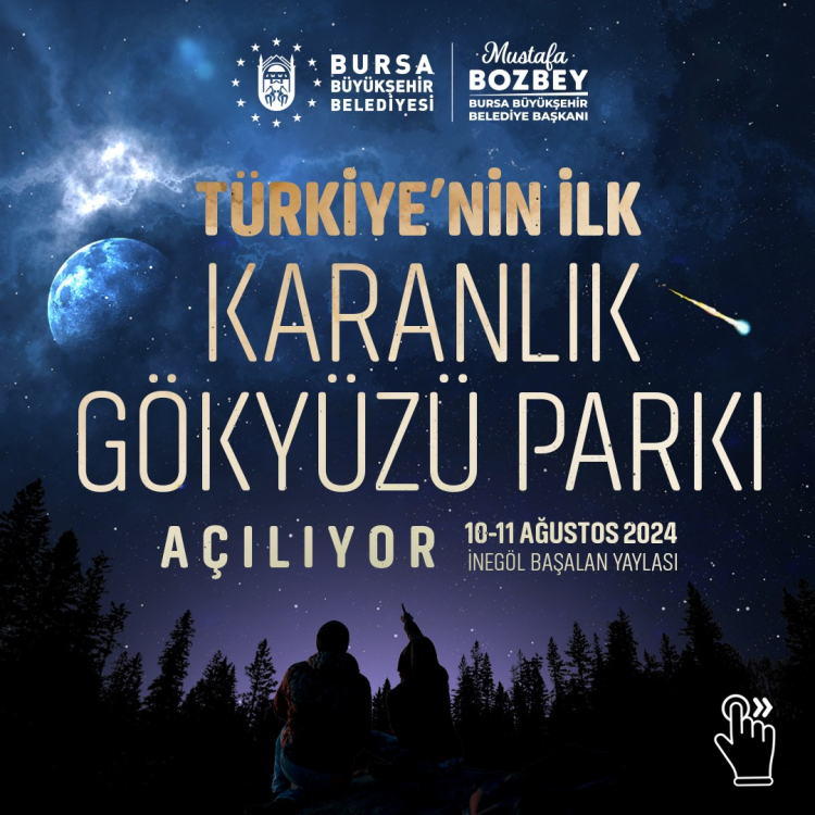 Bursa Büyükşehir Belediyesi tarafından İnegöl ilçesi Başalan Yaylası’nda kurulan Türkiye’nin ilk ‘Karanlık Gökyüzü Parkı, 10-11 Ağustos tarihlerinde açılıyor. Dünyada sadece 92 farklı örneği bulunan Karanlık Gökyüzü Parkı’nda atölyelerden drama ve oyun etkinliklerine, perseid göktaşı yağmuru gözleminden fikir yarışmasına kadar birçok etkinlik yapılacak.