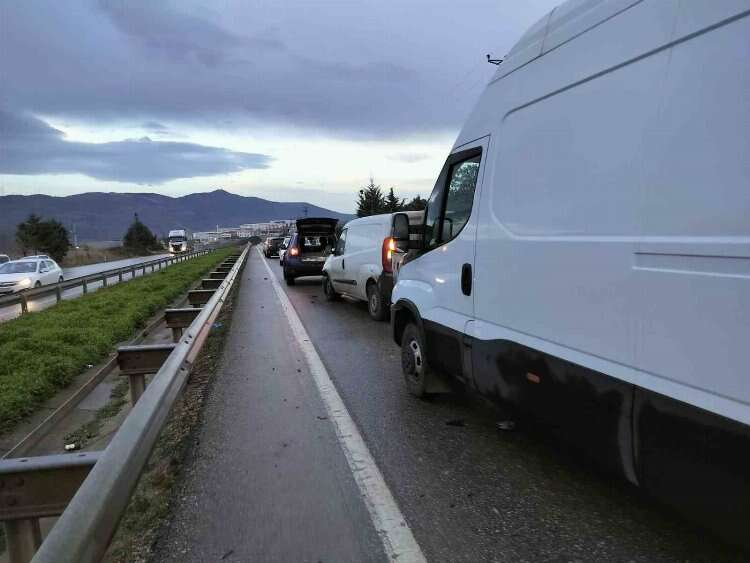 Yalova-Bursa karayolu, Orhangazi’ye bağlı Gedelek Mahallesi kavşağı yakınlarında sabah saatlerinde meydana gelen trafik kazasında, yağışlı yolda kontrolden çıkan bir otomobil, önünde yavaşlayan bir başka otomobile çarptı. Kaza sonucunda 5 araç karıştı ve büyük çapta maddi hasar oluştu.