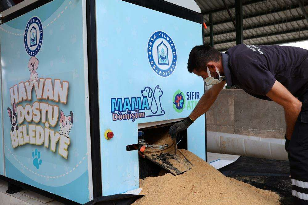 Yıldırım Belediyesi tarafından haftalık toplanan 2 ton atık yemek, Mama Üretim Tesisi’nde kedi köpek mamasına dönüştürülerek, başta Yıldırım Hayvan Barınağı olmak üzere ilçedeki odak noktalarına ve sokak hayvanlarına ulaştırılıyor.